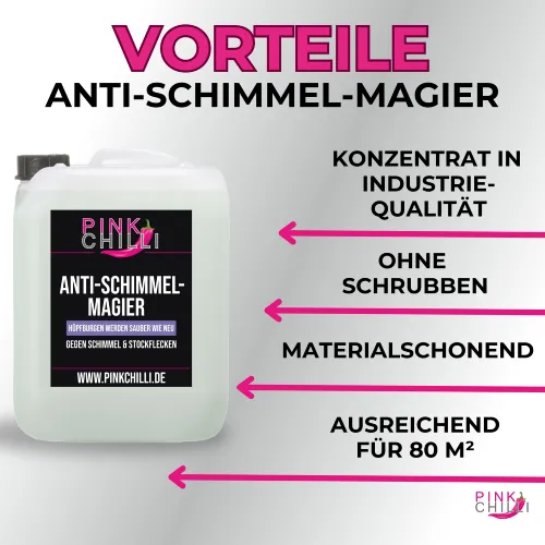 Jede noch so vergammelte Hüpfburg wird mit unserem Anti-Schimmel-Magier wieder sauber wie neu. Der Magier entfernt tiefenrein alle Schimmelsporen und Schimmelpilze, ohne die Farben der Plane zu verändern. Sprühe die Hüpfburg im aufgeblasenen Zustand ein.