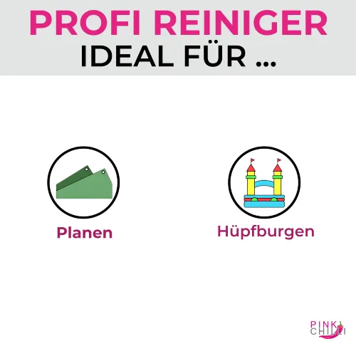 Das Produkt ist nur für die Anwendung im Außenbereich zugelassen. Nur auf PVC-Planen verwenden. Wir empfehlen die Produktverträglichkeit vor der Anwendung an unauffälliger Stelle zu testen. Sicherheitsmaßnahmen: Bitte trage bei der Anwendung Handschuhe und Schutzkleidung, um die Haut und Augen zu schützen. Sprühnebel darf nicht eingeatmet werden! Vermeide den Produktkontakt mit Kindern und Haustieren. Lese bitte vor der Anwendung die Anweisungen auf dem Etikett sorgfältig durch. Achte bei allen Arbeitsschritten darauf, dass die Hüpfburg auf einem befestigten Untergrund steht. Pflanzen oder Rasen können bei Kontakt mit dem Anti-Schimmel-Magier Schaden nehmen. Wenn eine größere Menge unseres Reinigers unverdünnt auf gepflasterte Flächen kommt, können diese sich aufhellen.