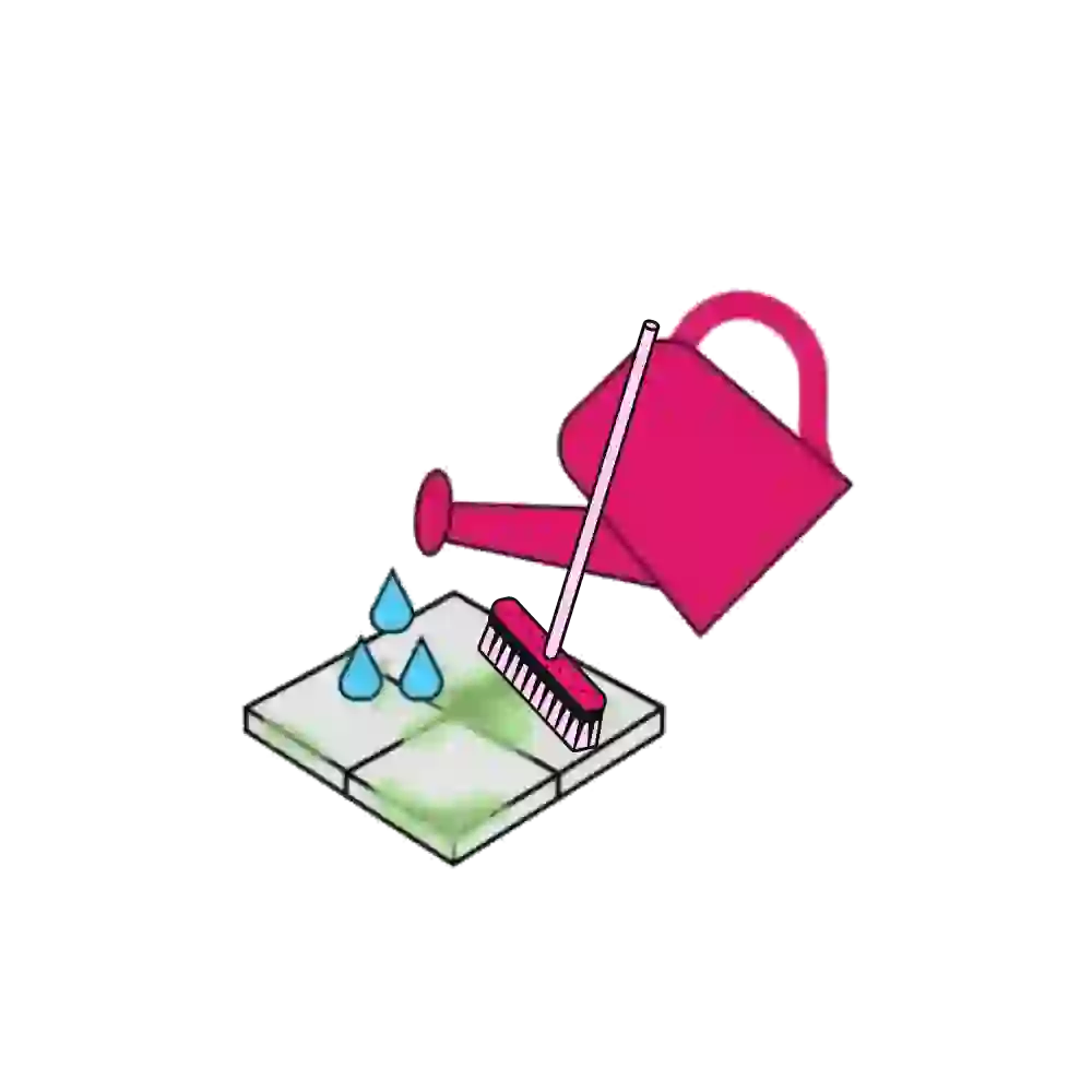 Nachdem die Einwirkzeit vergangen ist, spüle die Oberfläche mit viel Wasser ab. Zur Unterstützung nutze dabei einen Schrubber oder eine Bürste.