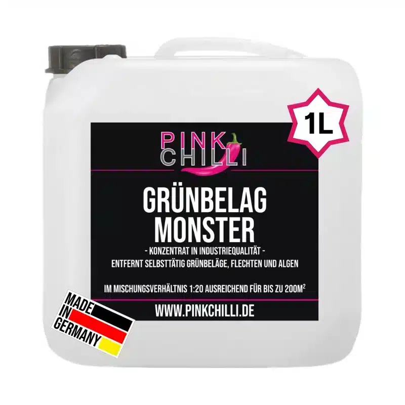 Unser Grünbelagmonster. Der Schrecken für grüne Beläge, Algen und Flechten. Auch als 5L-Variante erhältlich.