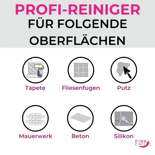 Die Schimmelbestie ist auf allen Oberflächen im Sanitärbereich, in Schwimmbädern, Pools und an Wänden anwendbar. Bitte prüfe aber sicherheitshalber die Produktverträglichkeit an einer unauffälligen Stelle.